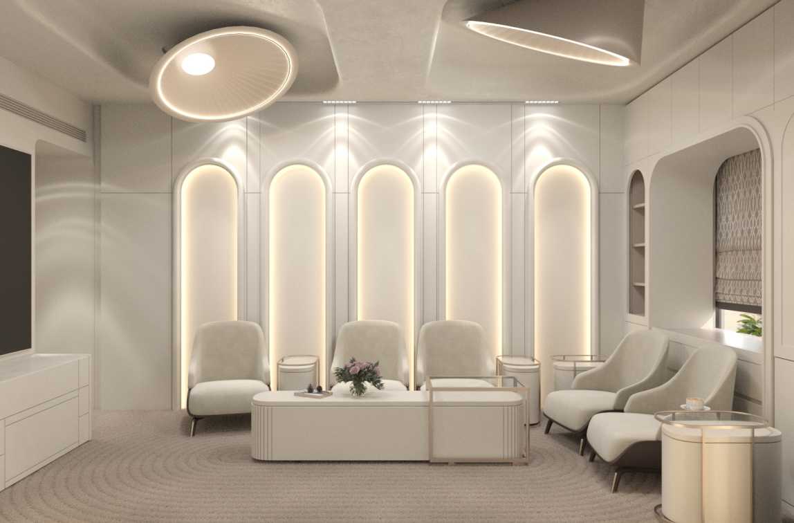 A refined workspace crafted with soft lighting, curved forms, and a calm neutral palette—shaping an environment that feels inviting, efficient, and elevated. Every zone is designed for comfort and flow, offering a modern workplace experience that blends functionality with quiet luxury.
