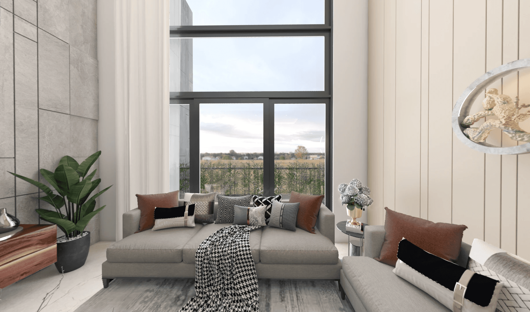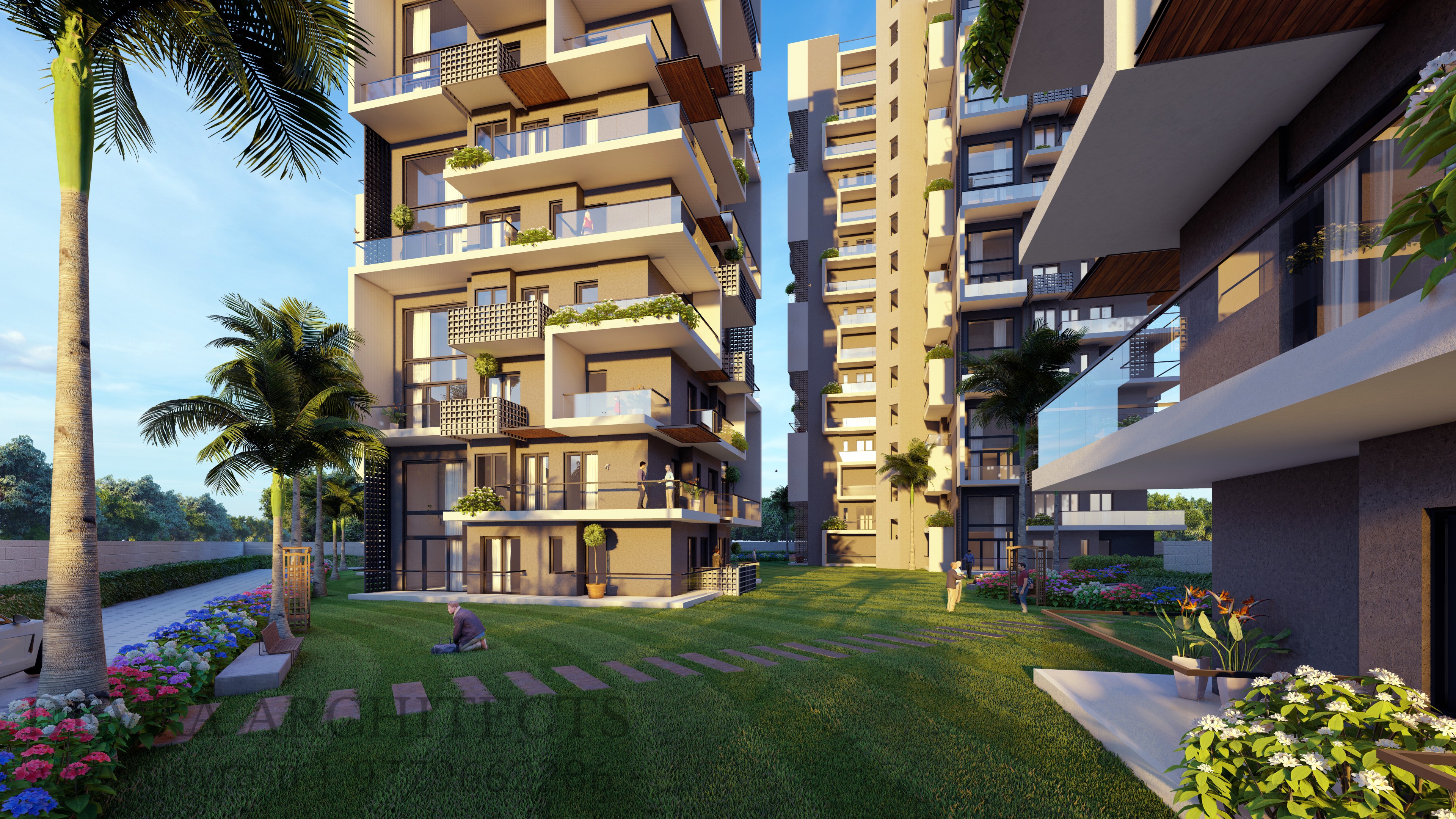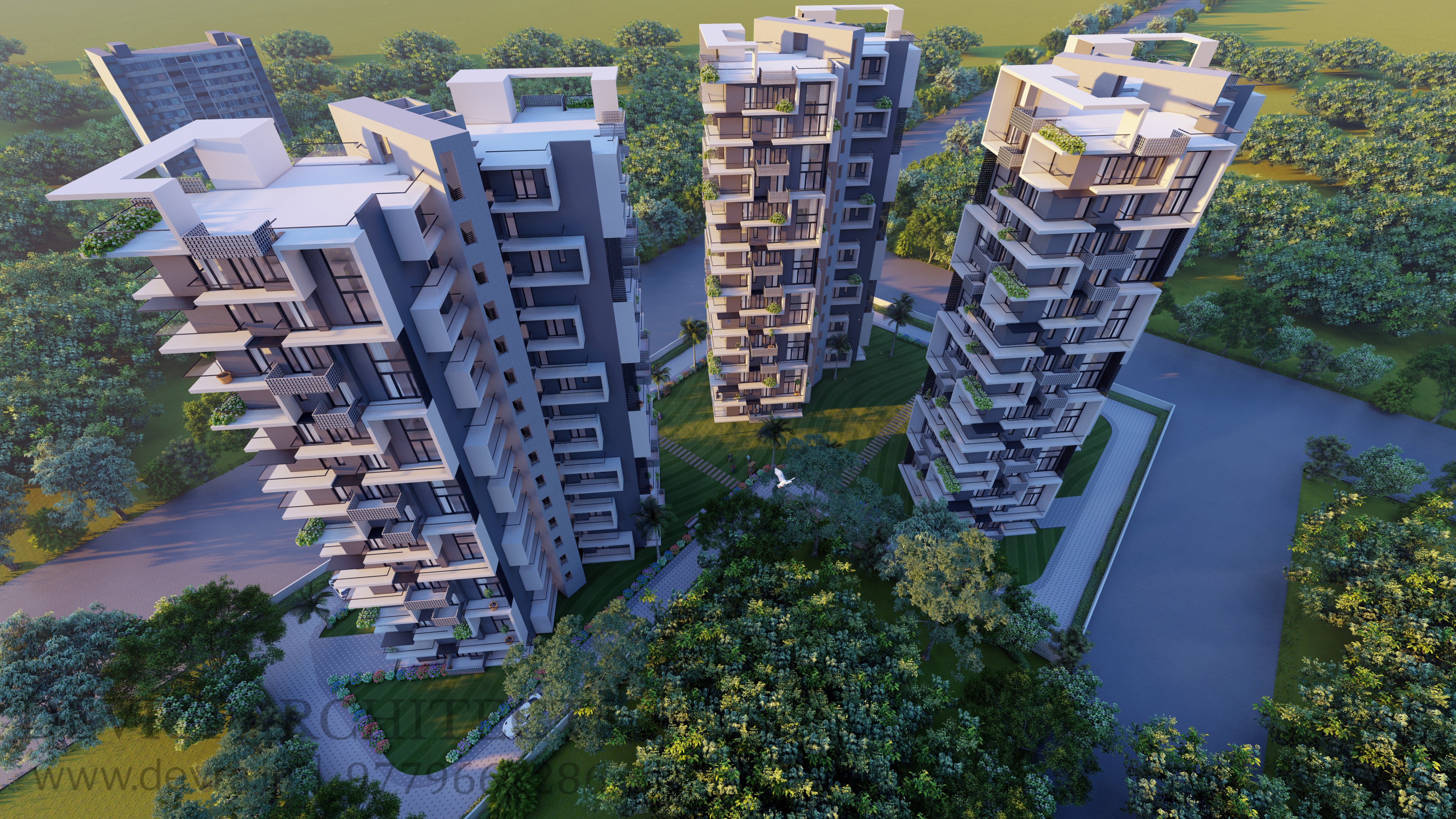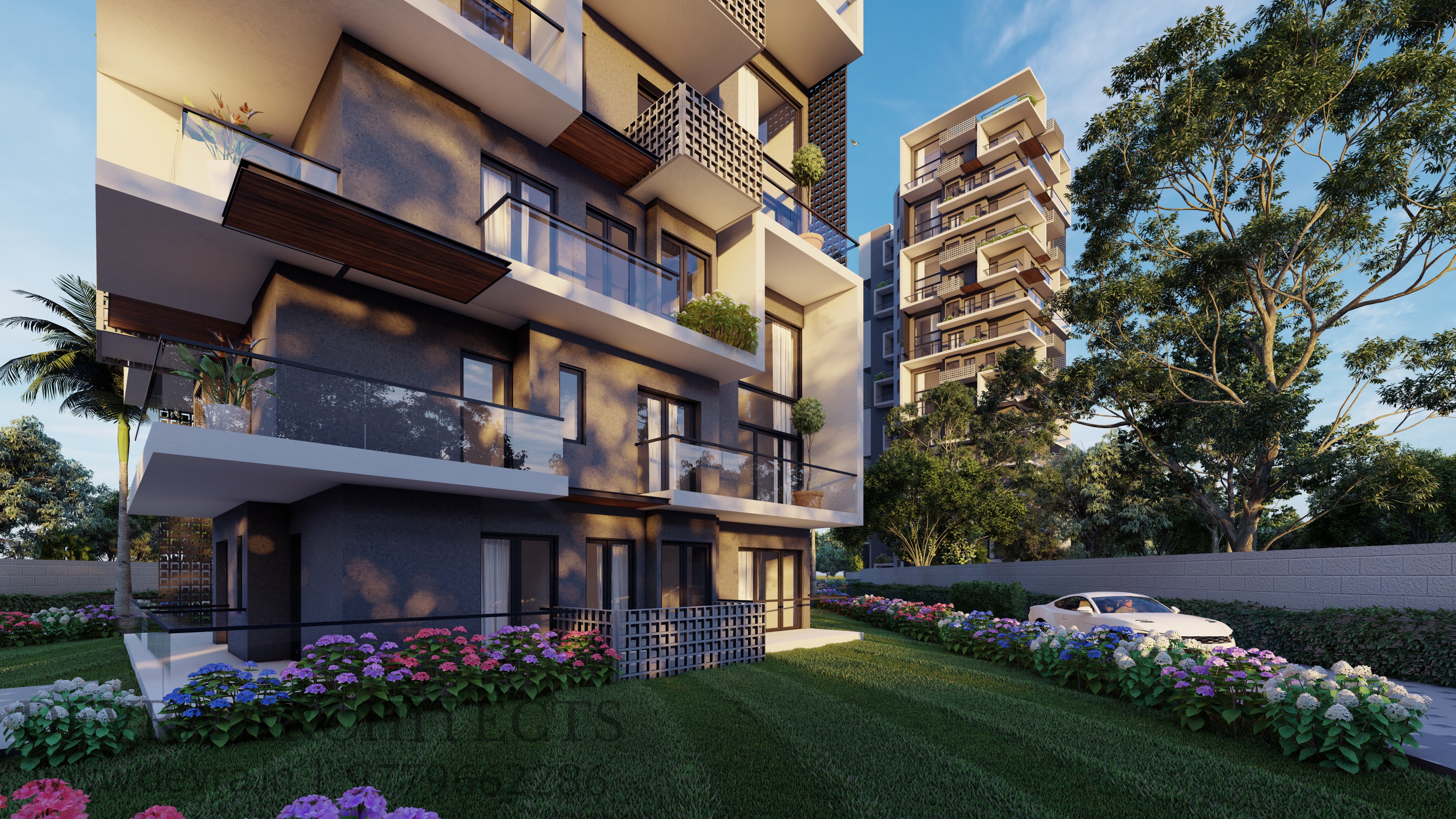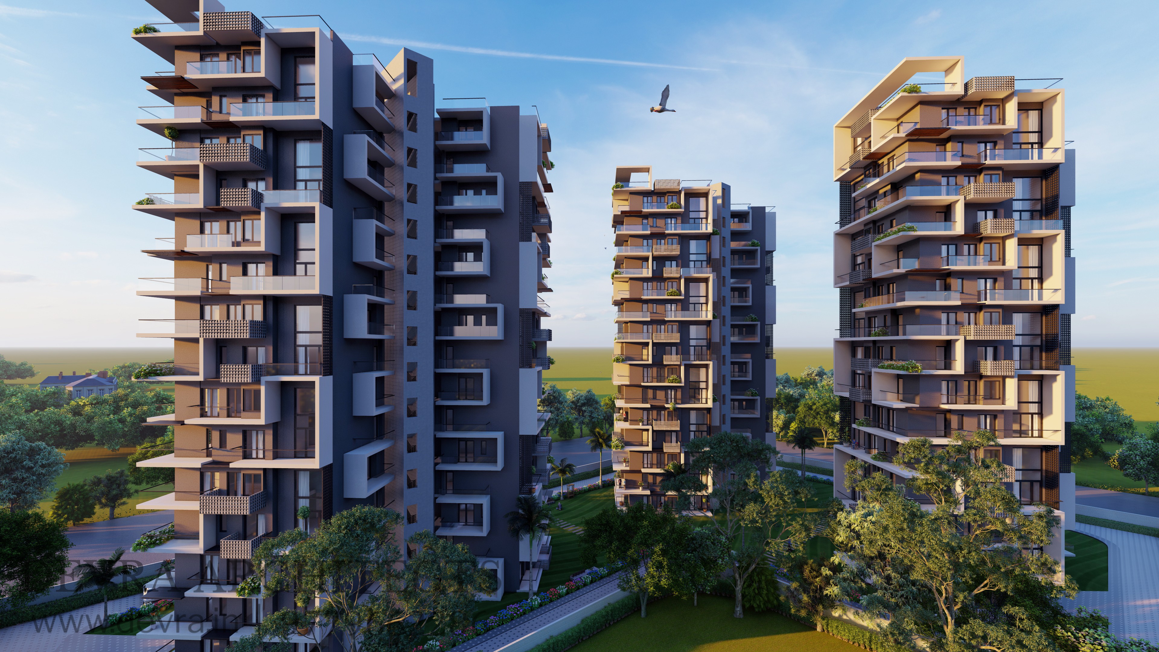 A contemporary housing development defined by clean geometry, functional planning, and an articulated façade. Cantilevered balconies, framed edges, and vertical breaks give the towers a distinct identity while ensuring ample light, ventilation, and sweeping views. The architecture balances efficiency with elegance, creating a refined yet practical living environment.