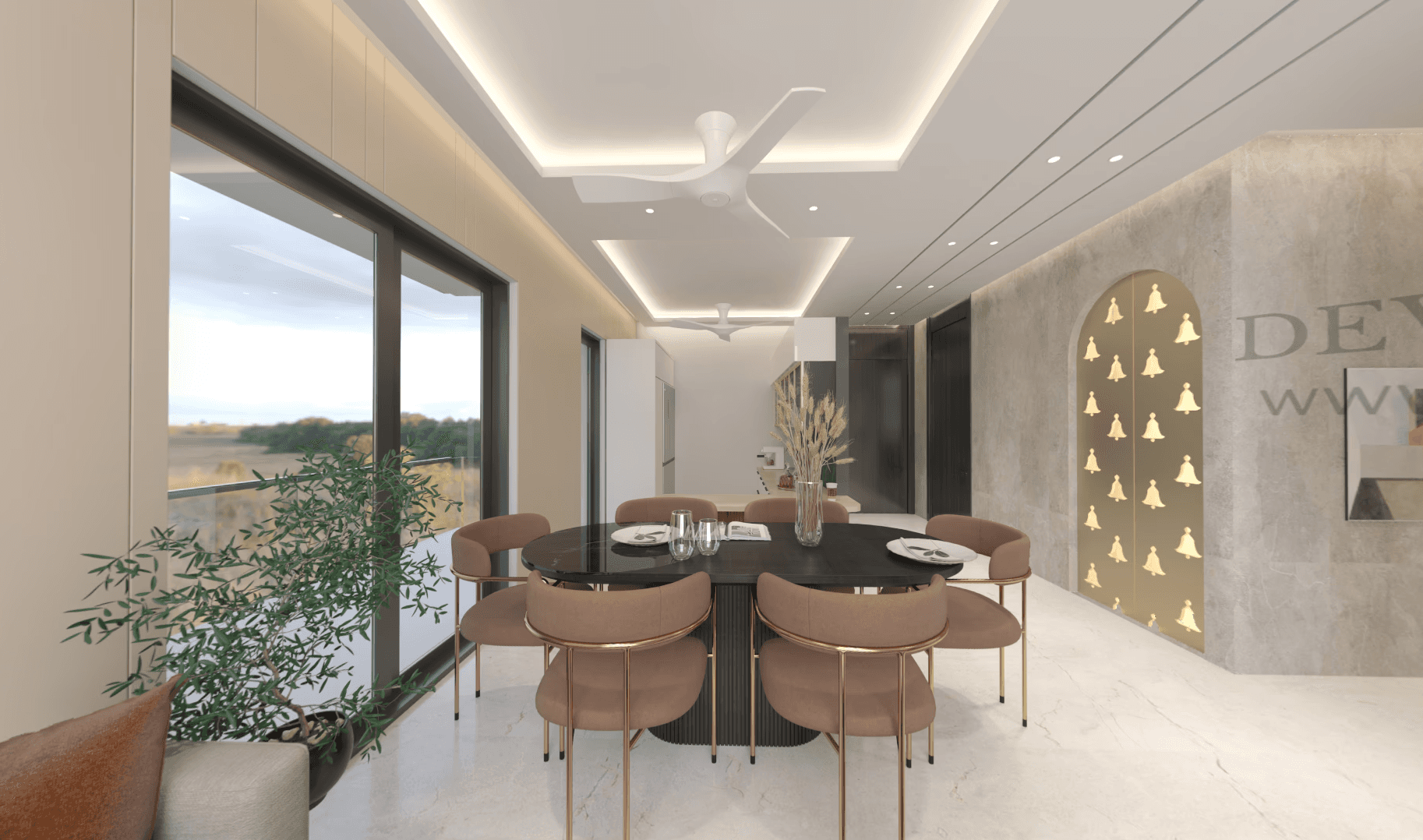 The interiors bring a quiet harmony—warm light, natural textures, and thoughtful details shaping spaces that feel alive, lived in, and beautifully at ease.