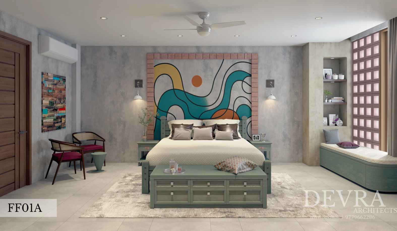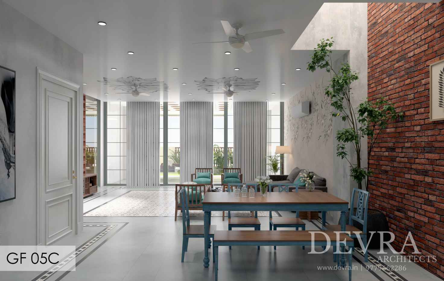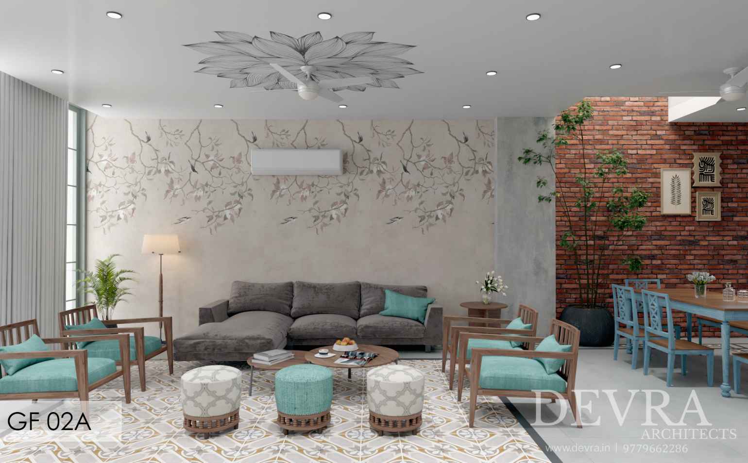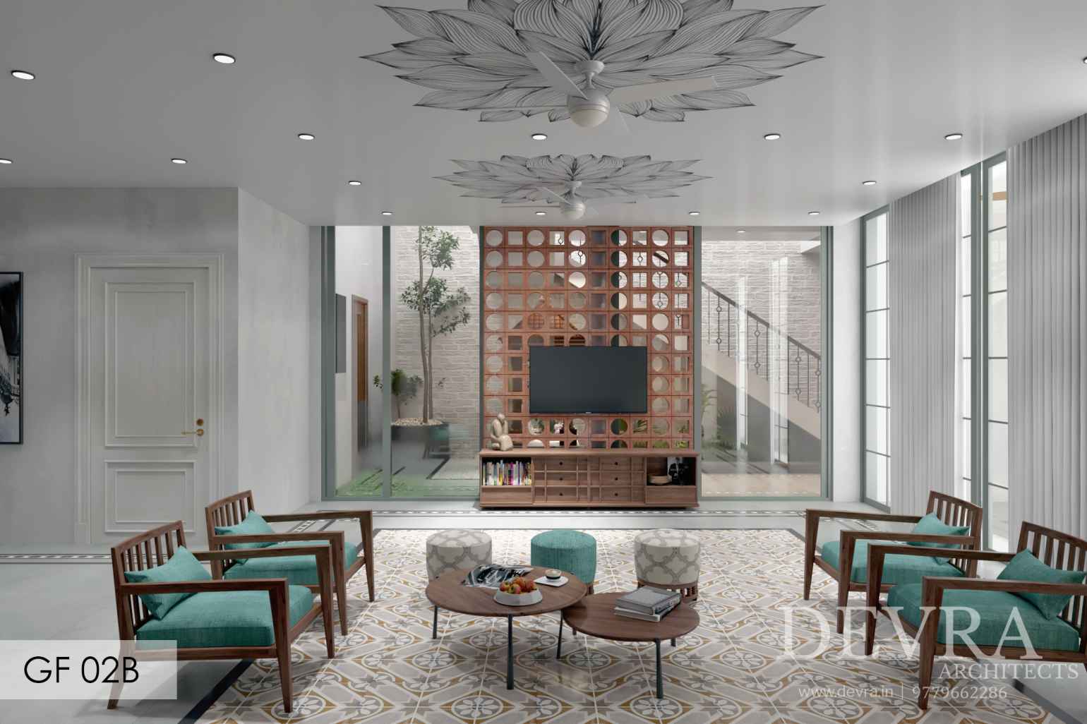 A tropical-rustic villa defined by deep clay-tile roofs, carved brick surfaces, and layered balconies that open to lush green views. The façade blends vernacular warmth with modern proportion, creating a home that feels rooted, timeless, and naturally welcoming.